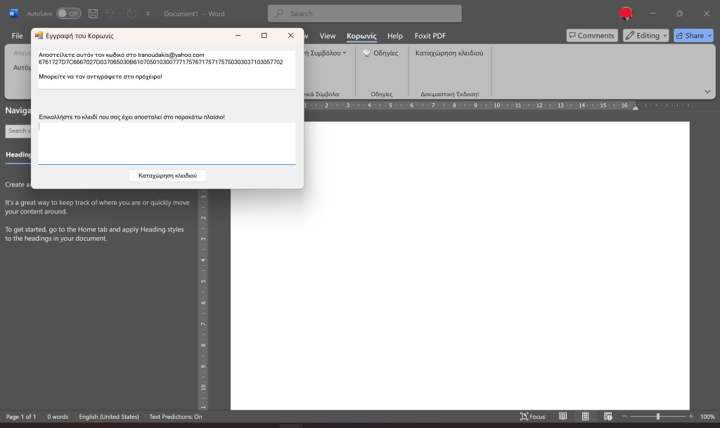🔶 3. Εισαγωγή του API Key μέσα στο Word Add-In